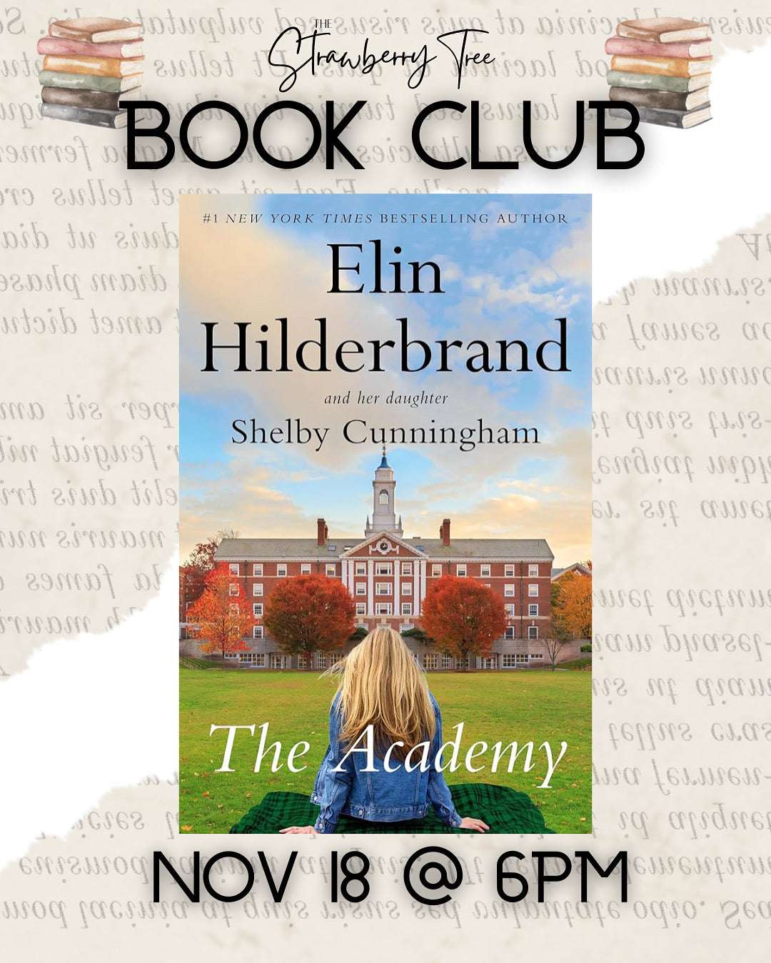Our next book club will be on November 18th @ 6pm and we will be discussing Elin Hilderbrand’s The Academy